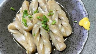 この料理を作ってからこんにゃくの旨さに気づいてしまった??手綱(たづな)こんにゃくこんにゃくは、アク抜き済みのものを購入8mmくらいにスライスするボウルに切ったこんにゃくを入れ、砂糖大1を加えてよく混ぜそのまま2分間ほど置いた後、水で洗って...