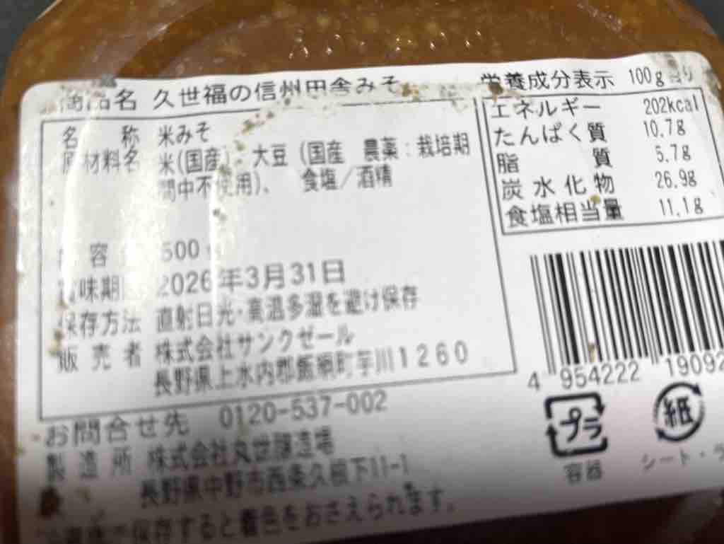 久世福の信州田舎みそ