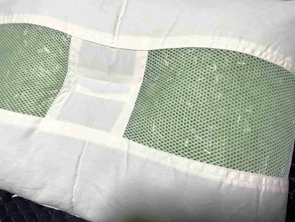側生地はファスナータイプで中材のパイプは取り出せて洗えます。