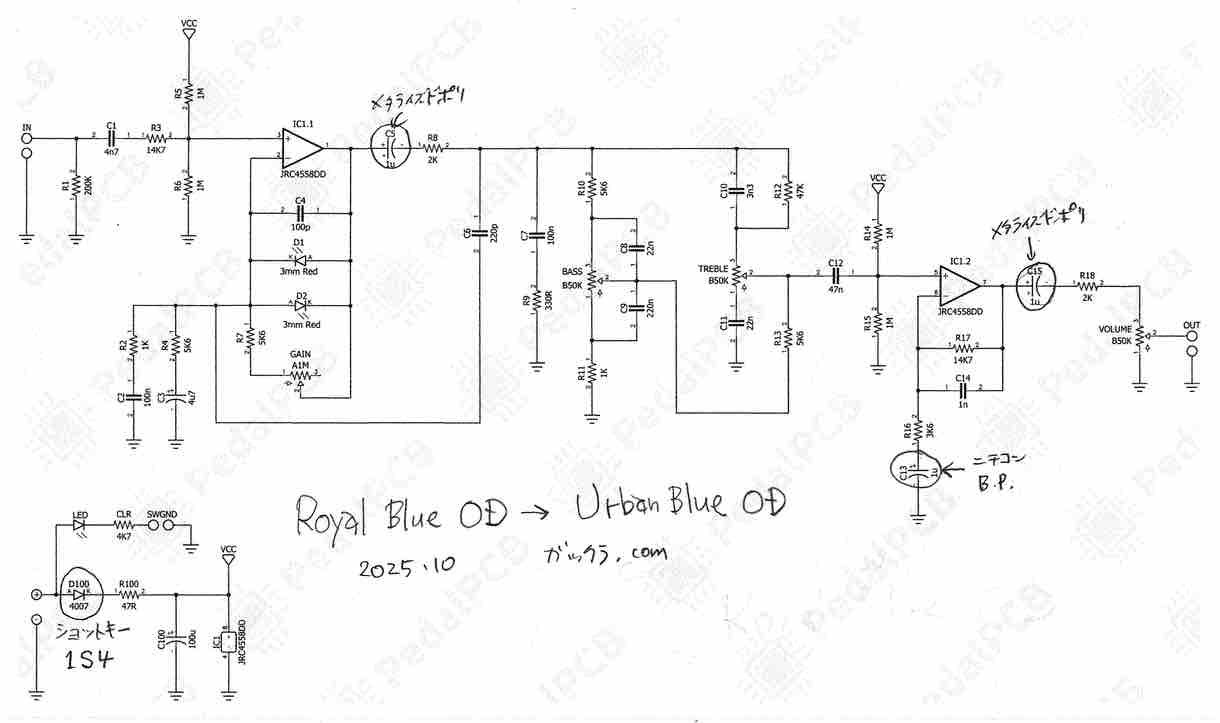 サウンドチェックの結果、元の回路図通りの200kΩにした