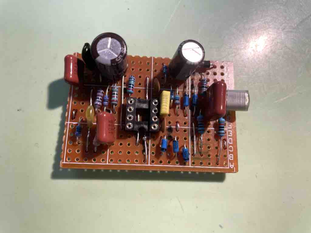 を確かめてから、オペアンプICを装着(まずは汎用の4558にしておいた)